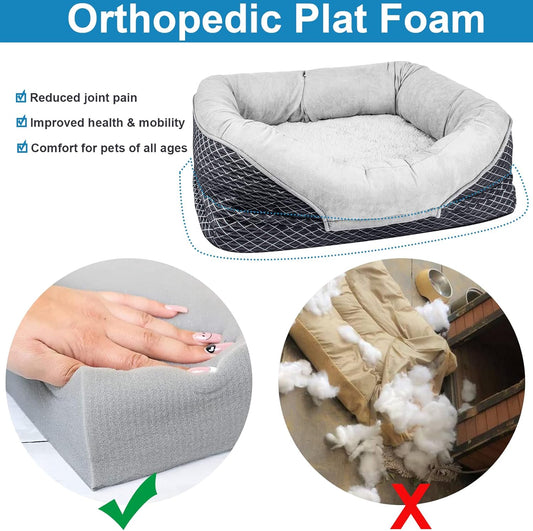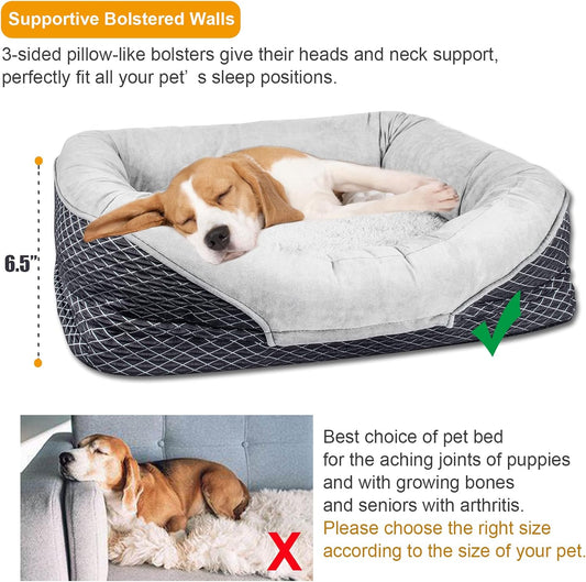 Orthopedic Dog Bed, Bolster Dog Beds for Small/Medium/Large Dogs with Removable Washable Cover, Waterproof Lining and Nonskid Bottom Couch(S-21X16 In)