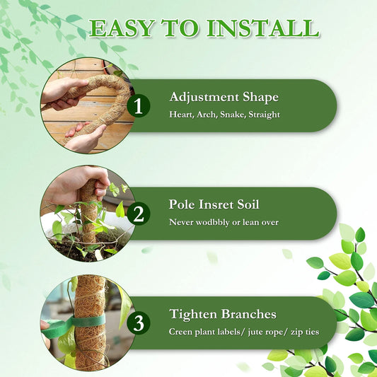 Bendable Moss Pole for Plants Coconut Palm Fiber Monstera Plant Support Handmade Coco Climbing DIY Garden Accessories